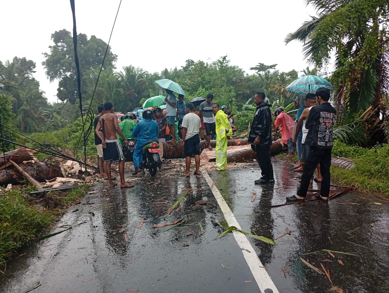 Adapun pohon tumbang di Dusun Oli menyebabkan jaringan listrik terputus hingga terjadi pemadaman listrik di wilayah tersebut. Terkait kejadian itu pihak kepolisian langsung berkoordinasi dengan pihak PLN untuk perbaikan jaringan.